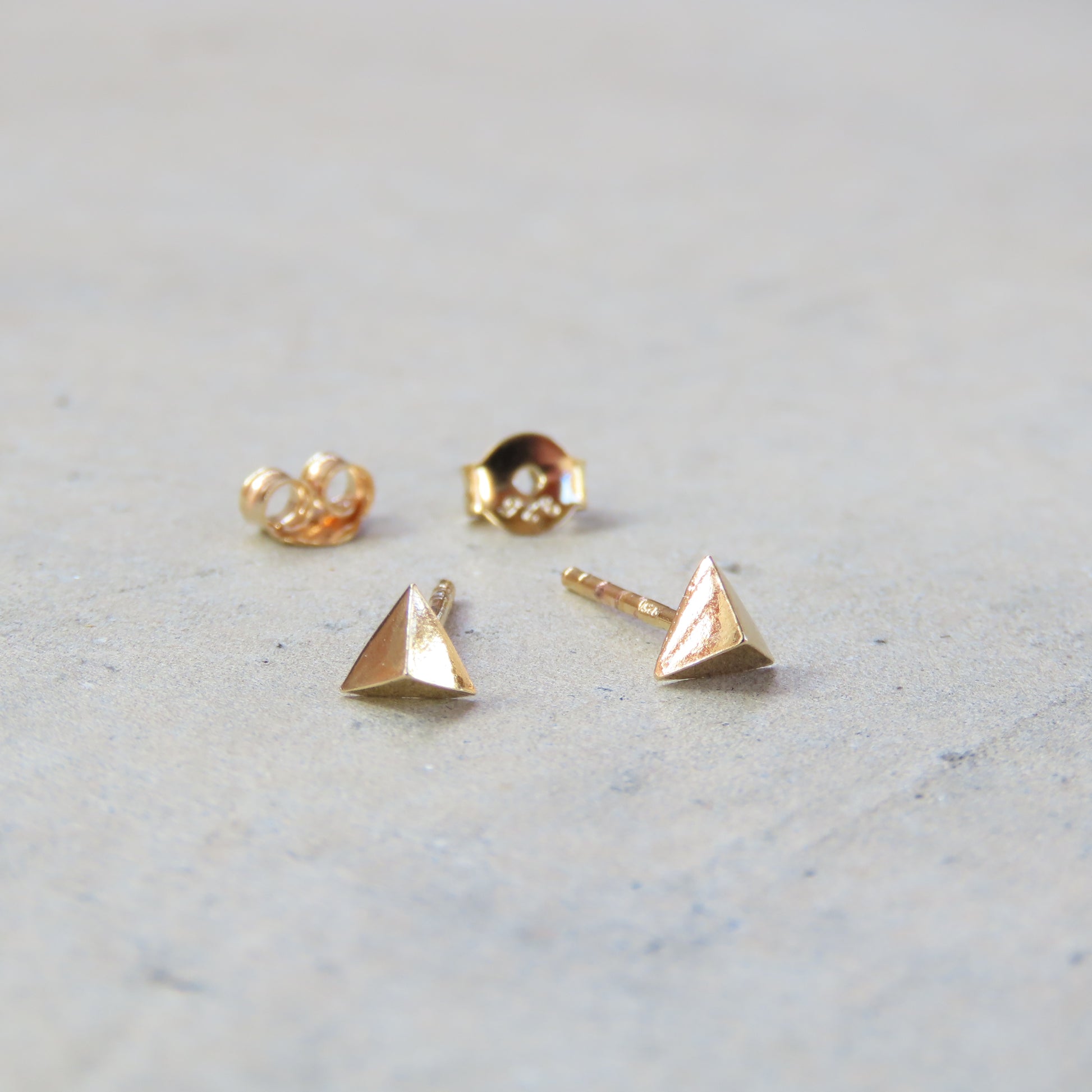 These delicate little pyramid shaped earrings are made from 14k gold over sterling silver. Fair trade.