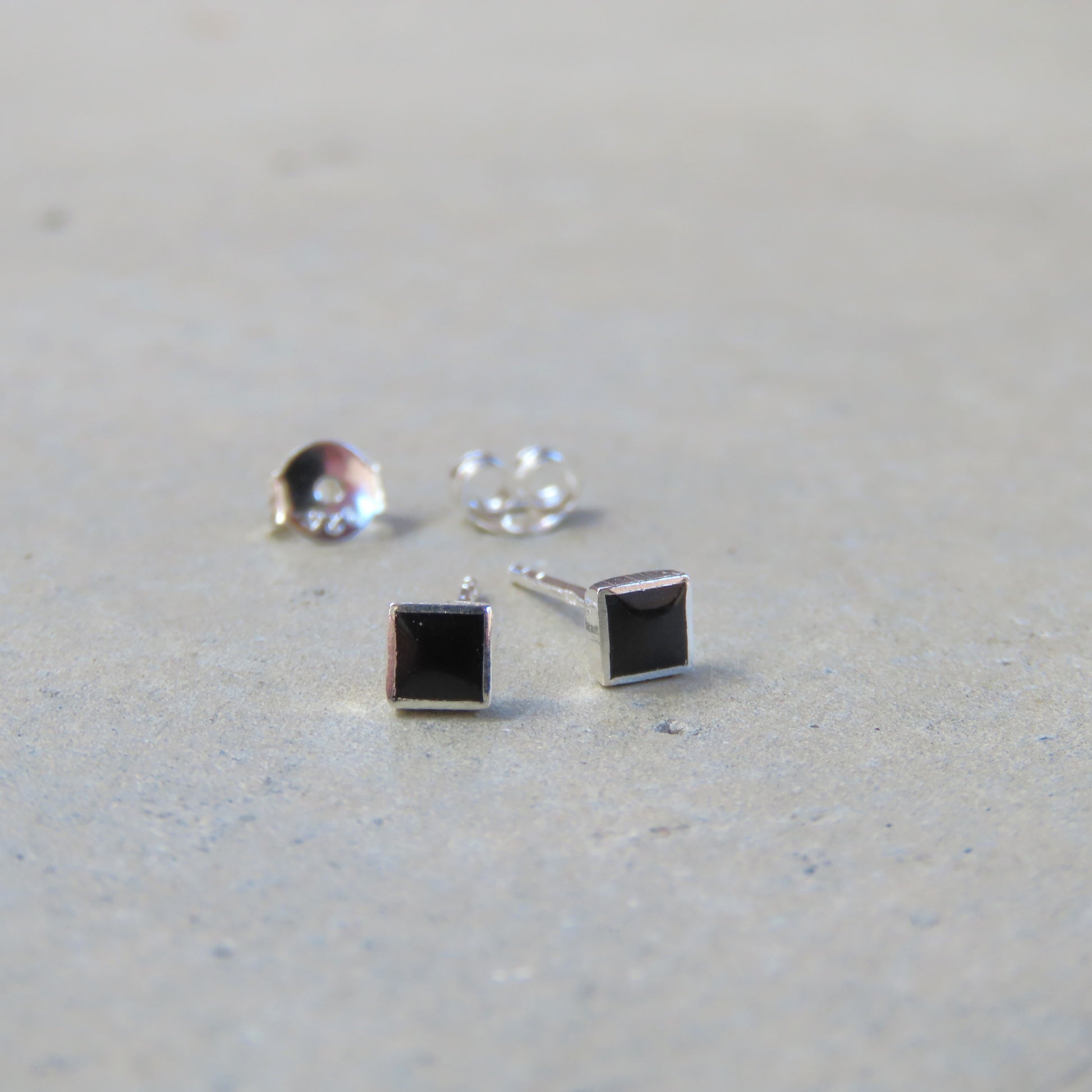 Abstract Studs: Silver Onyx Squares