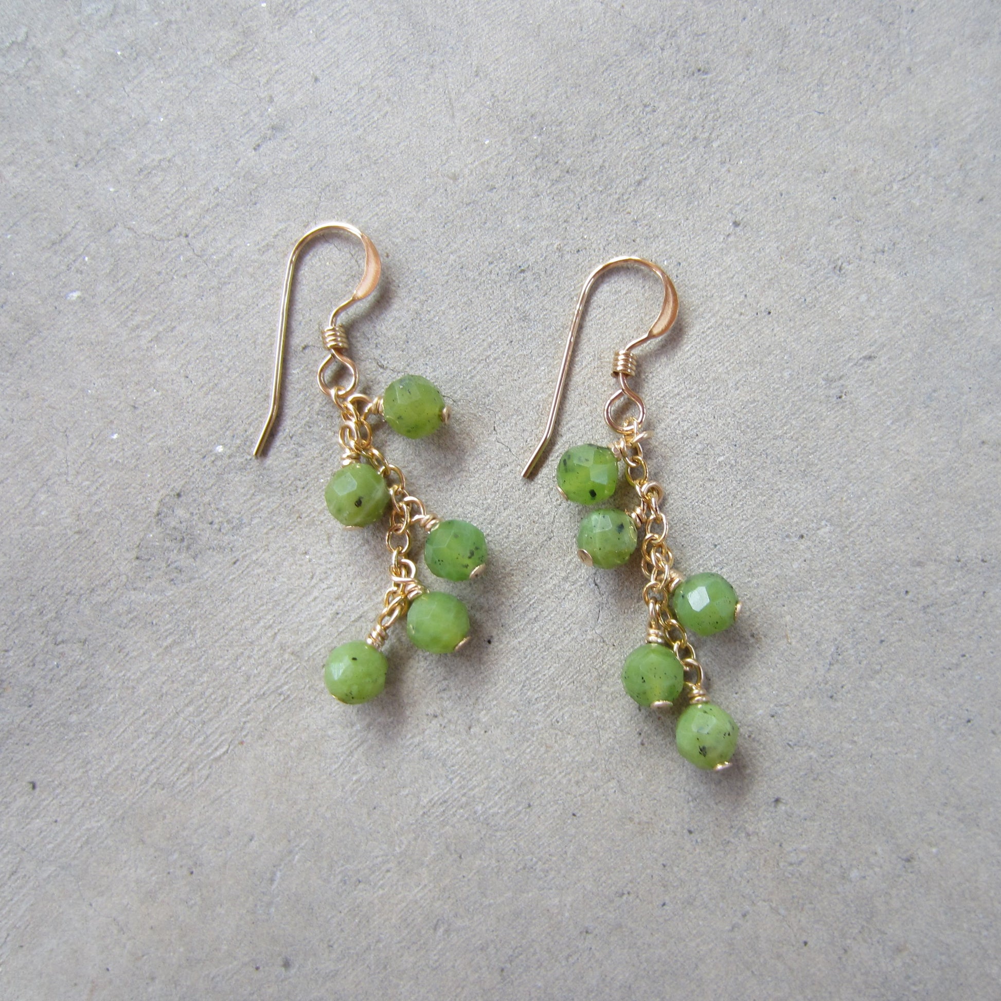 Canadian Jade Cluster Earrings in 14k Gold Fill for Success