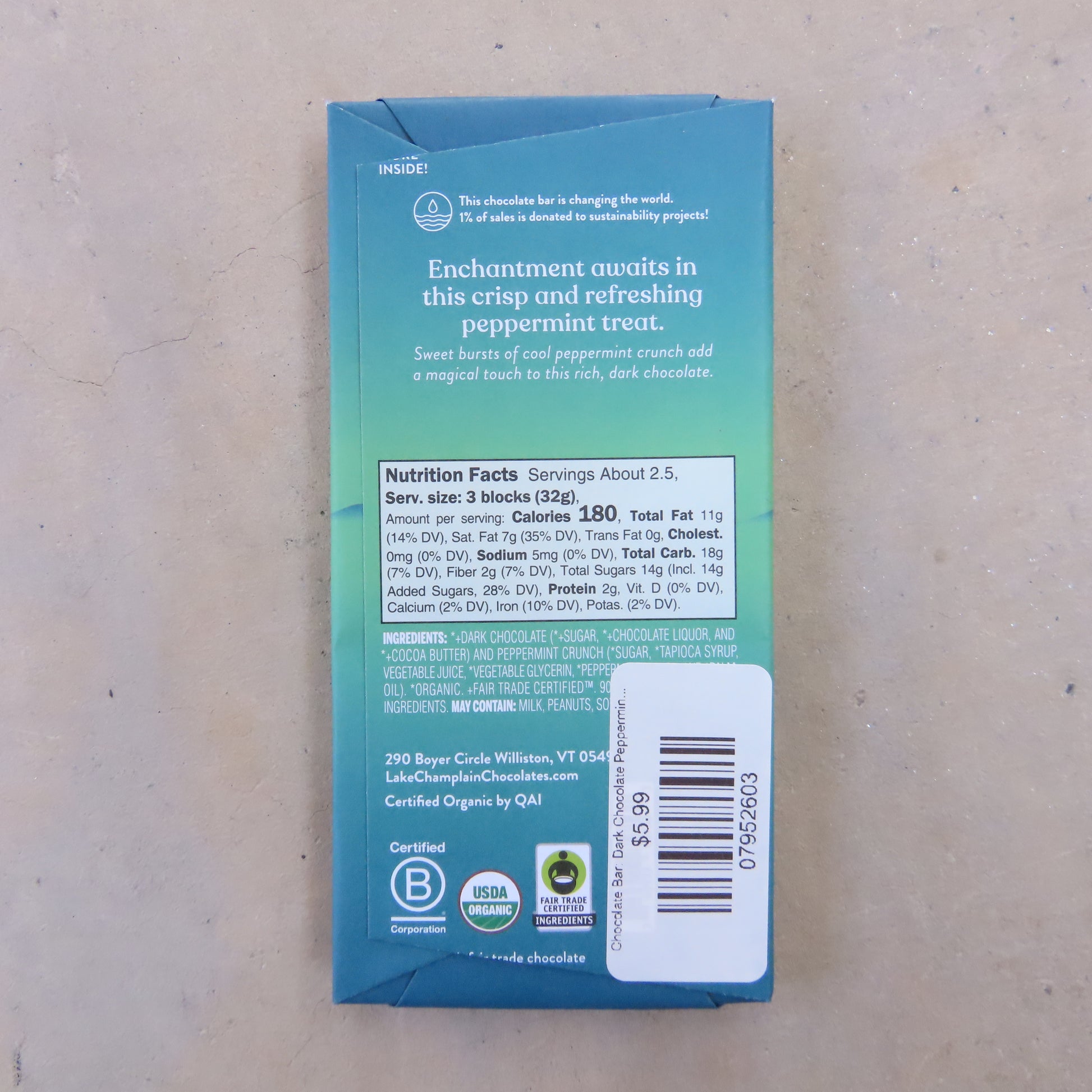 Dark chocolate laced with cool peppermint crunch - a taste of irresistible magic. With peppermint candy pieces embedded in our 57% dark chocolate, this bar is guaranteed to enchant from first sight to last bite. And like all our chocolate bars, it's crafted in Vermont in small batches for optimal freshness and flavor. Unwrap your own today, and fall under a sweet new spell...