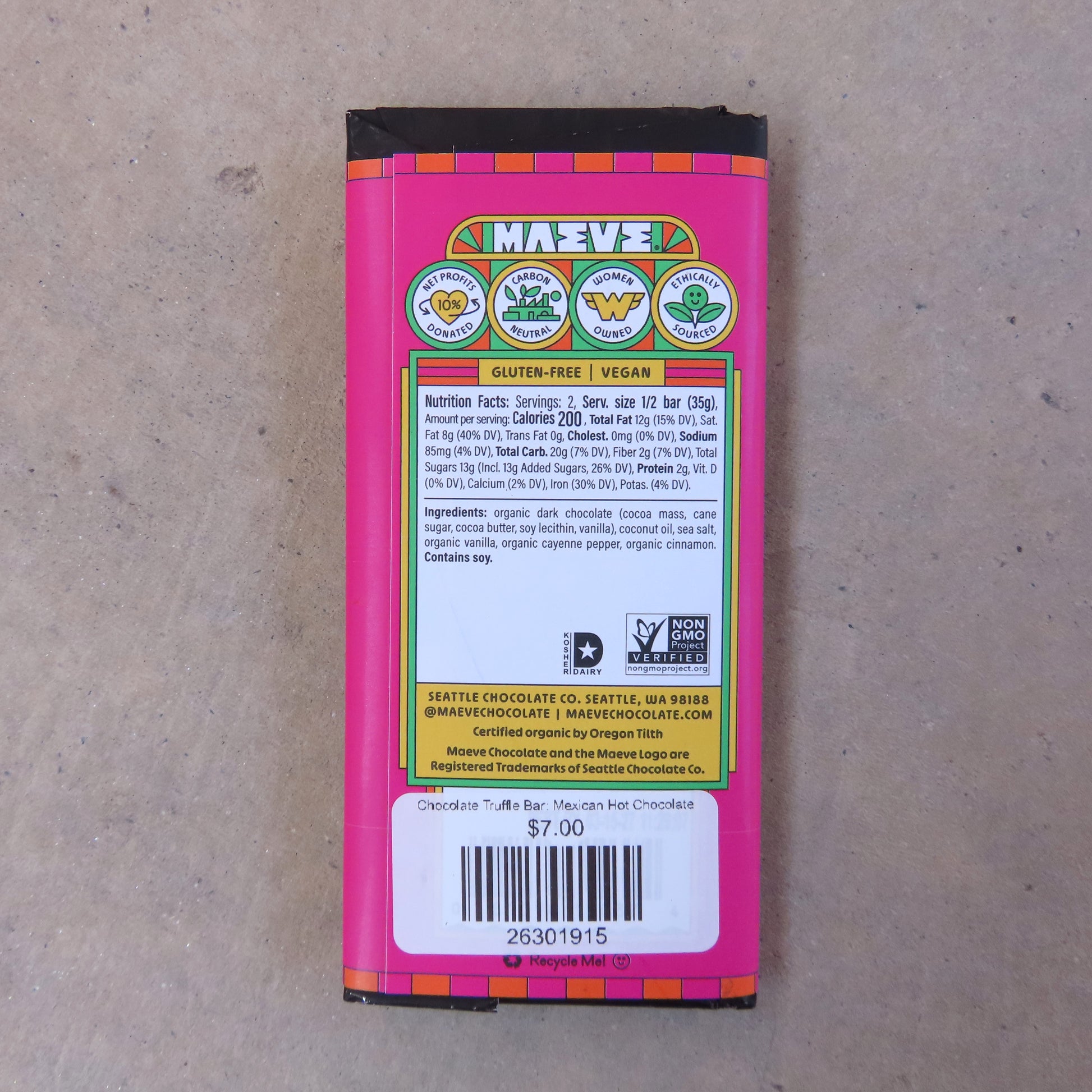 Maeve’s take on Mexican Hot Chocolate includes fresh-ground cinnamon, pure vanilla extract from Madagascar, and a pinch of cayenne pepper adding depth to this organic dark chocolate dream. Smooth, spicy, and slightly addicting — this is hot chocolate on a Baja vacation.