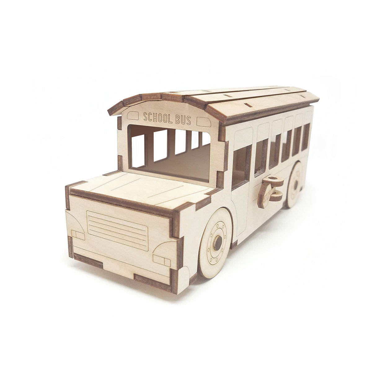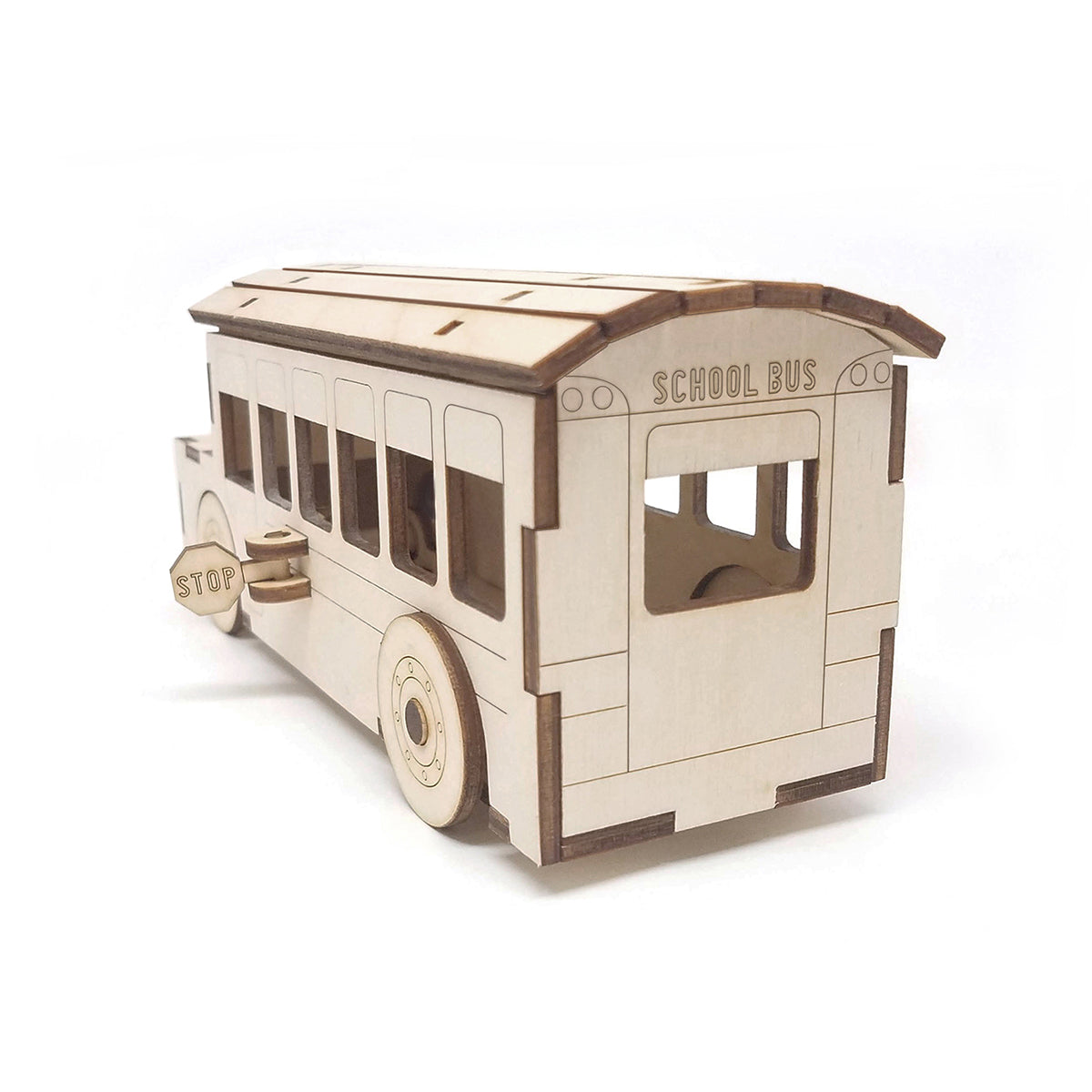 Let your creative and playful side flourish with this fully customizable DIY laser cut wooden school Bus kit! The laser cut wooden model is easily assembled. A great toy for any child who loves to play with model vehicles. Load it up with your favorite toys and make sure to put out the fully-functioning stop sign when dropping off your passengers. Use paint or makers (not included with this kit) to decorate and personalize your bus.