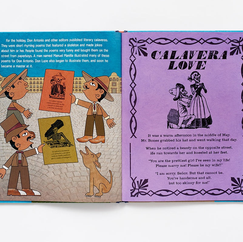Funny Bones tells the story of how calaveras came to be. The amusing figures are the creation of Mexican artist José Guadalupe (Lupe) Posada (1852–1913). Lupe learned the art of printing at a young age and soon had his own shop. In a country that was not known for freedom of speech, he drew political cartoons, much to the amusement of the local population but not to the politicians.