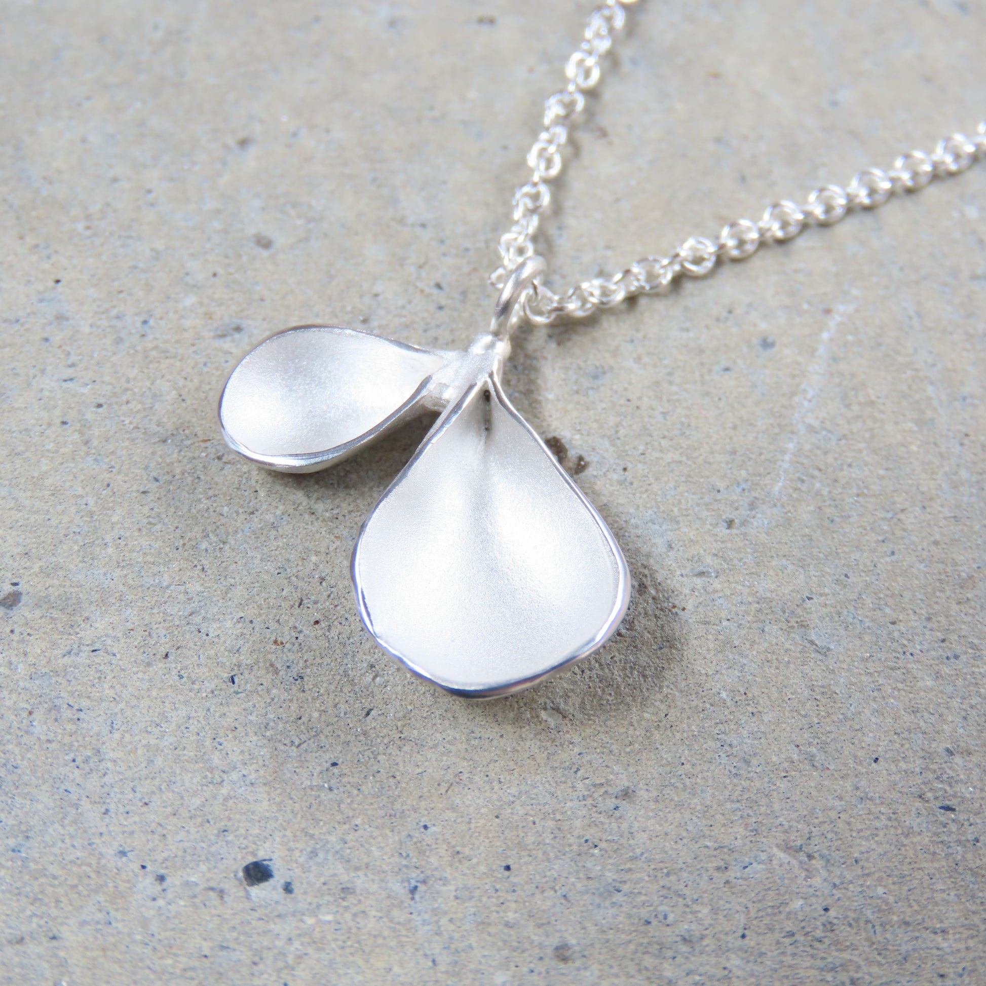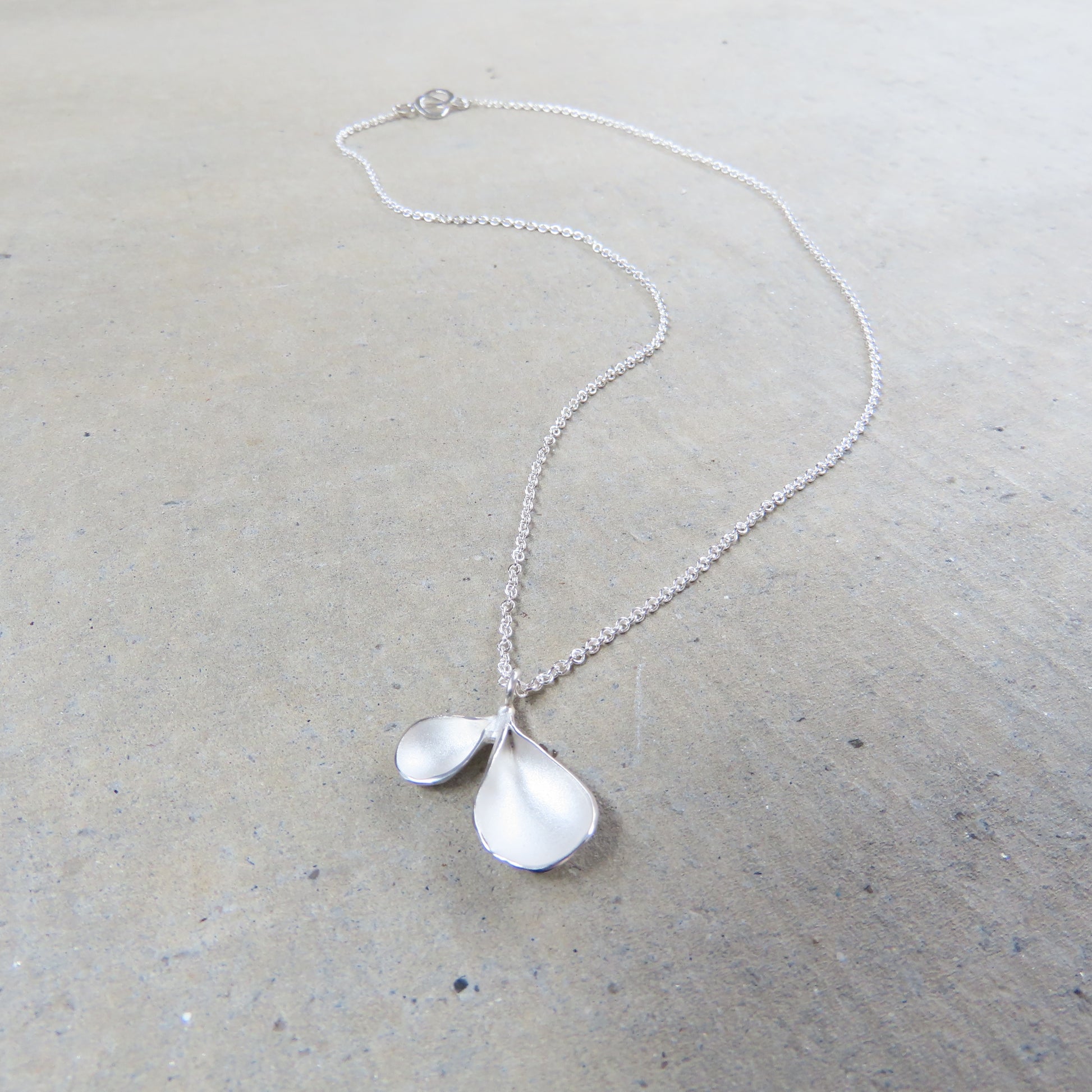 Large Double Petal Pendant in Sterling Silver with Silver Chain