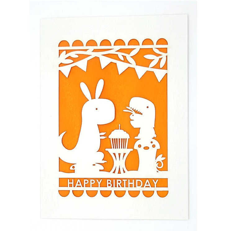 Laser Cut Greeting Card: Happy Birthday Dino and Bunny