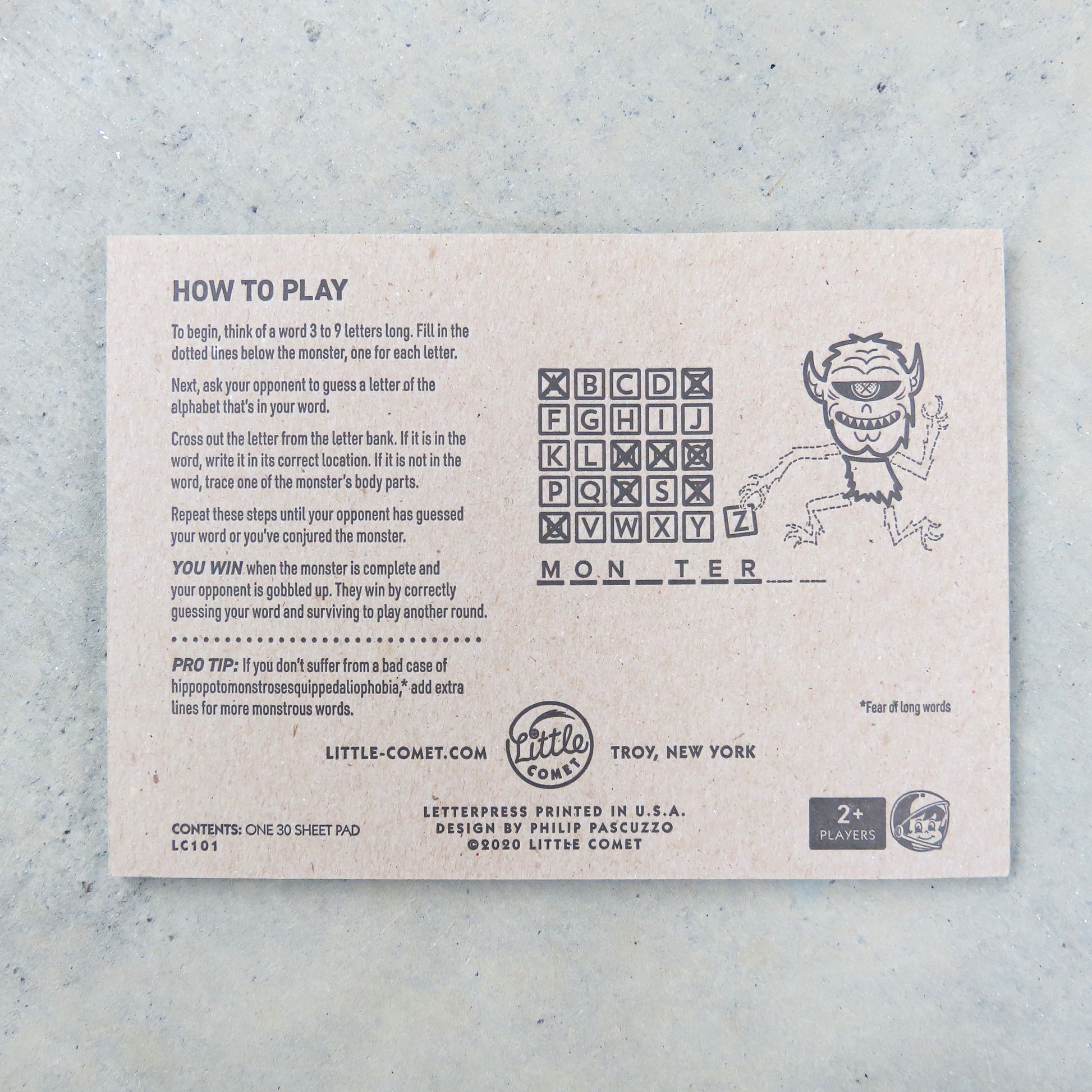 Keep a close eye on your consonants and don’t lose control of your vowels because word is, there’s a monster afoot and he has a liking for letters! Keep him at bay and keep yourself entertained with this timeless, travel-friendly spelling game you can play anywhere.