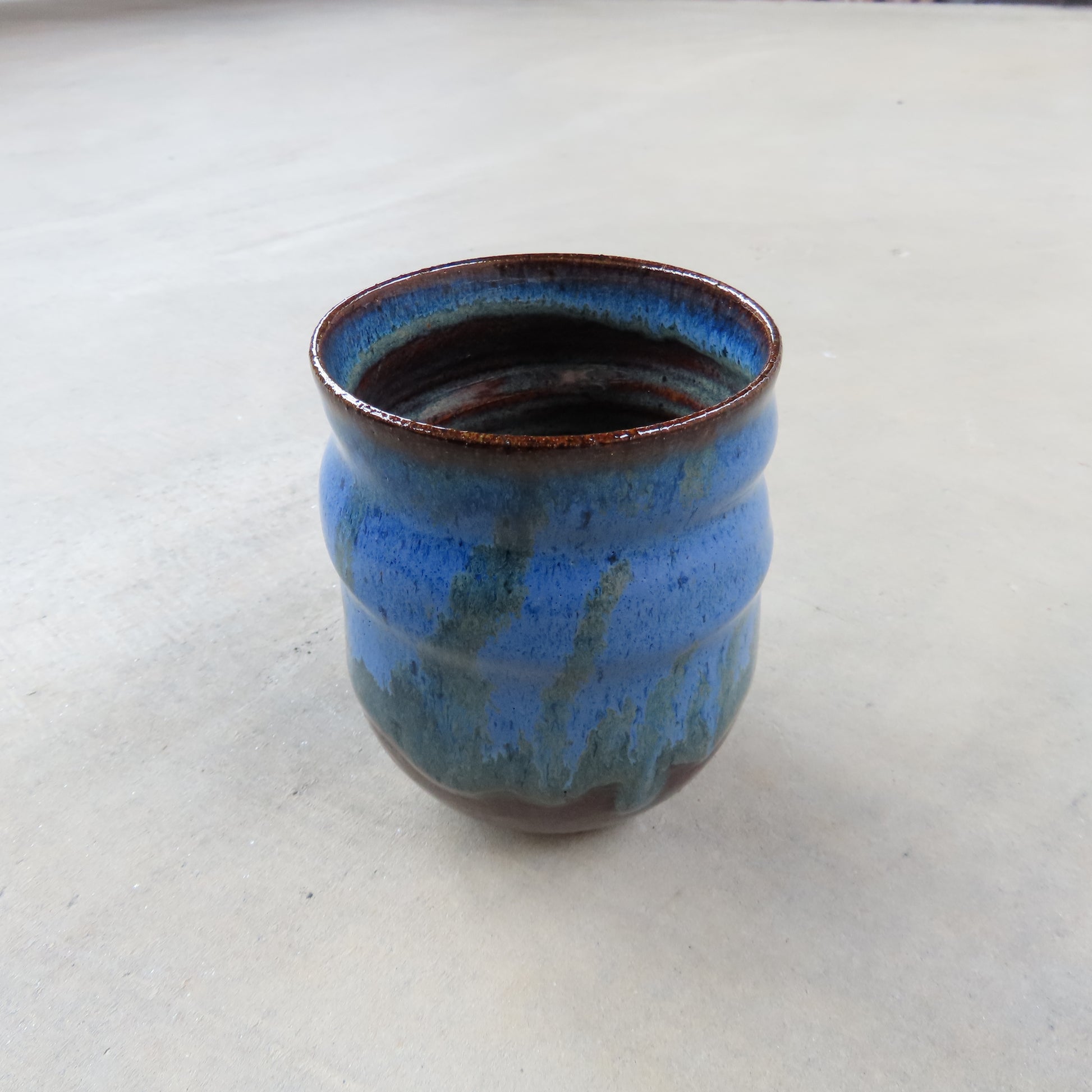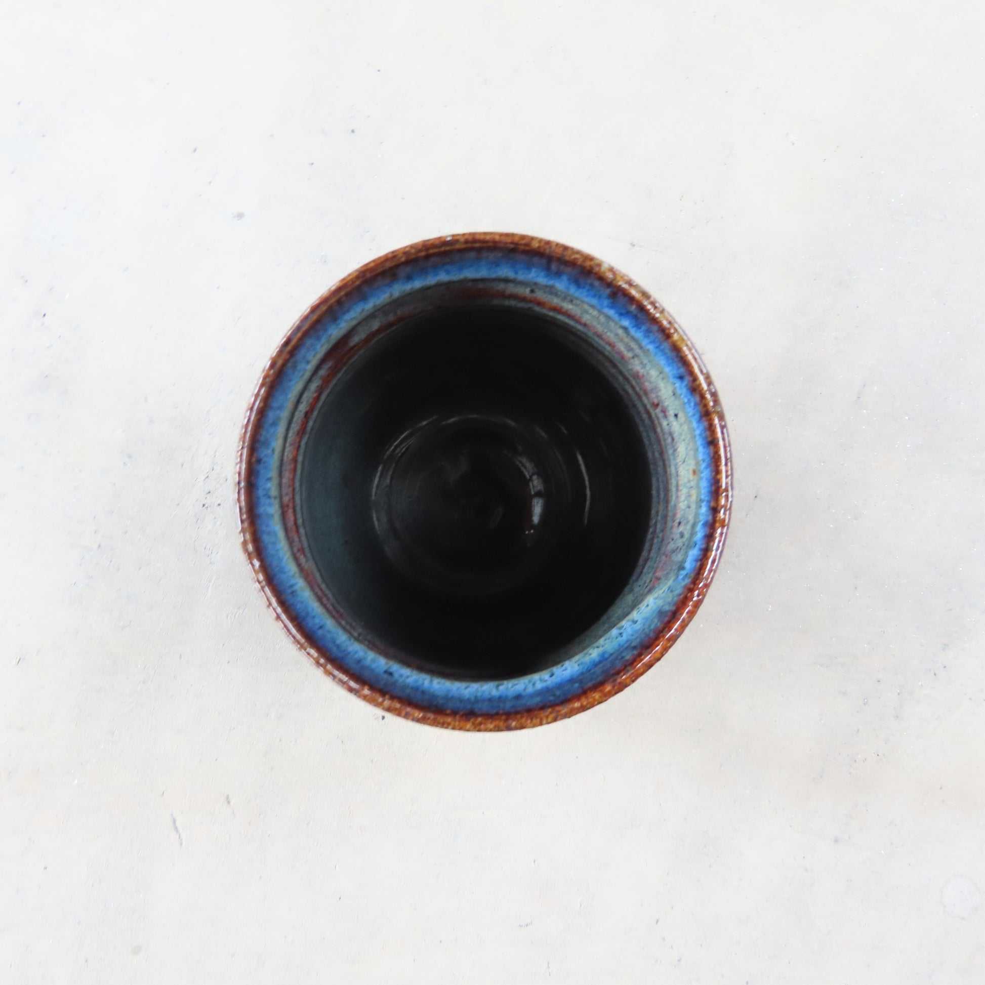Medium Handmade Ceramic Tumbler: Cobalt Blue and Brown Glaze