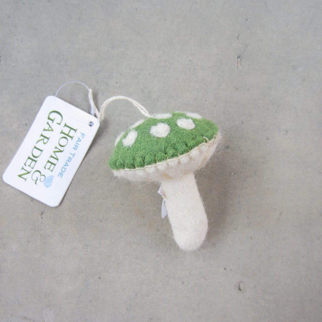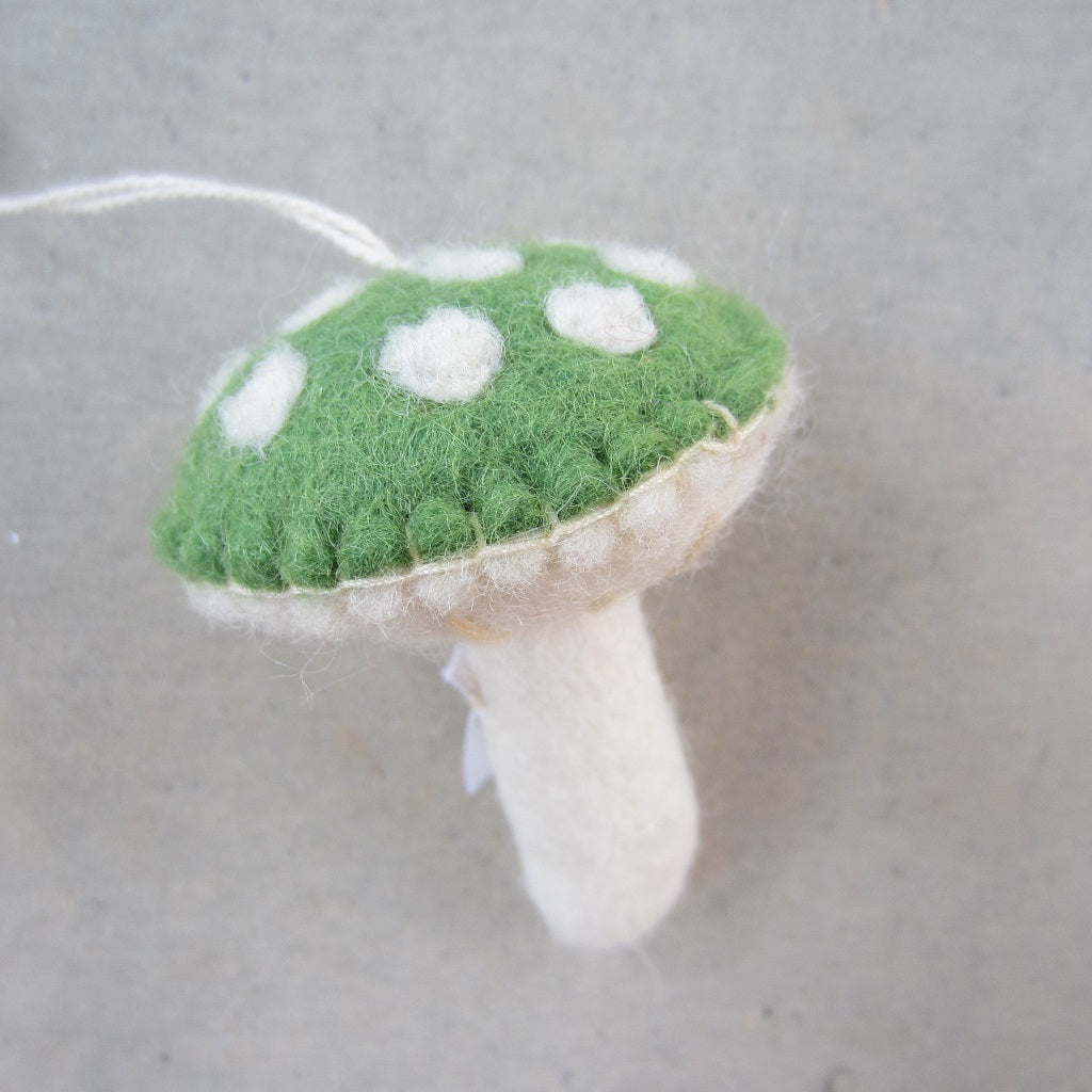 This sweet little needle felted wool ornament was handmade in Nepal by a fair trade artisan group.