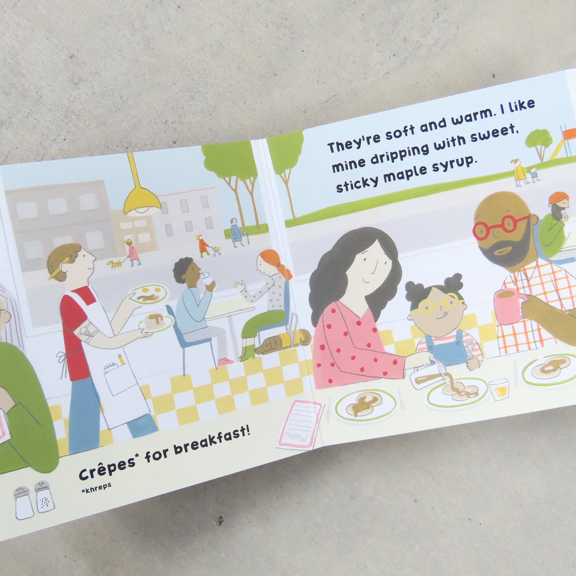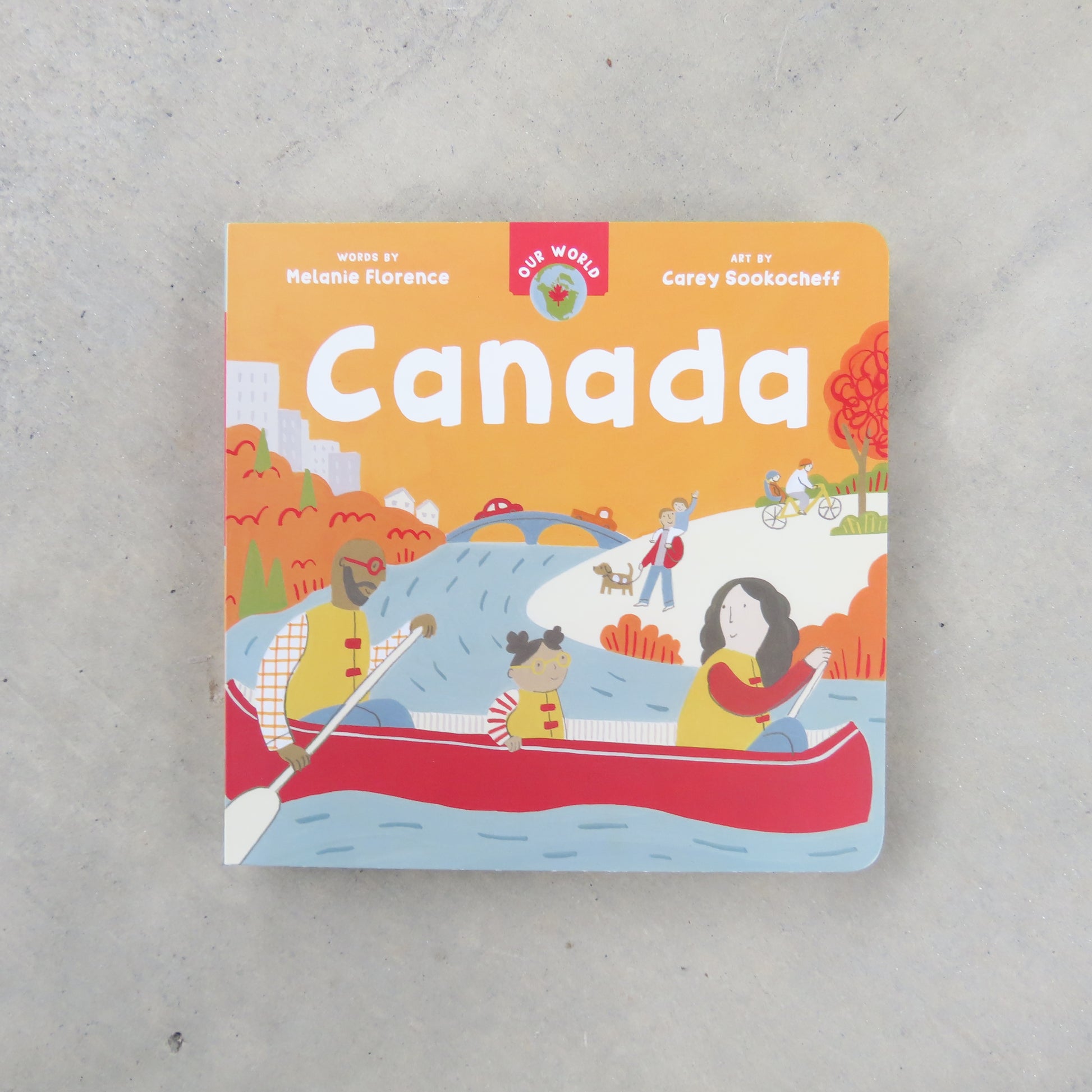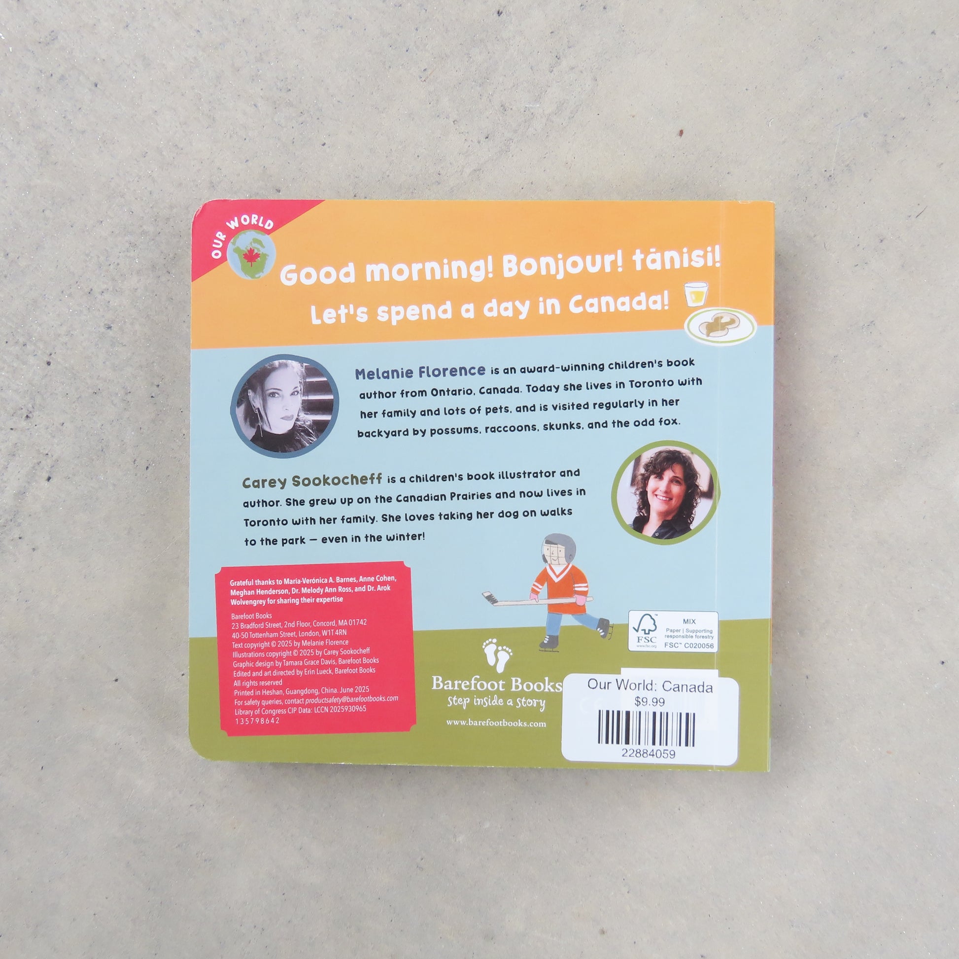 Good morning! Bonjour! Tānisi! Spend a day in Canada. Eat soft crepes with sticky maple syrup, play with atimwak in the snow and cache-cache in the park, and zip and zoom around the ice rink. Even learn words in French and Cree with pronunciation guides throughout the story. Written by Canadian author Melanie Florence and illustrated by Canadian illustrator Carey Sookocheff. 20 pages. Board book.
