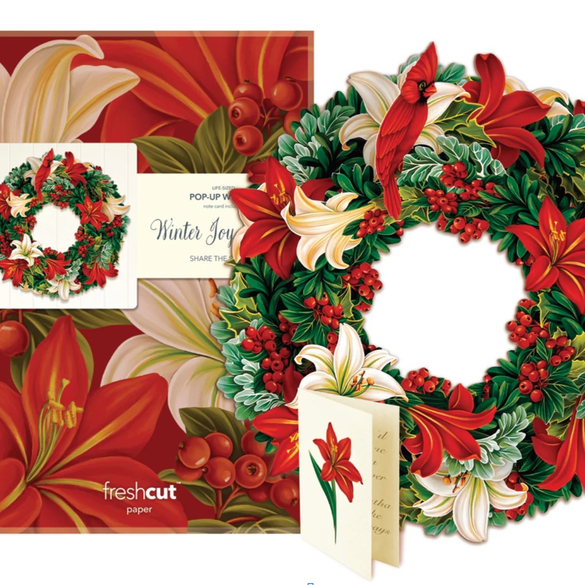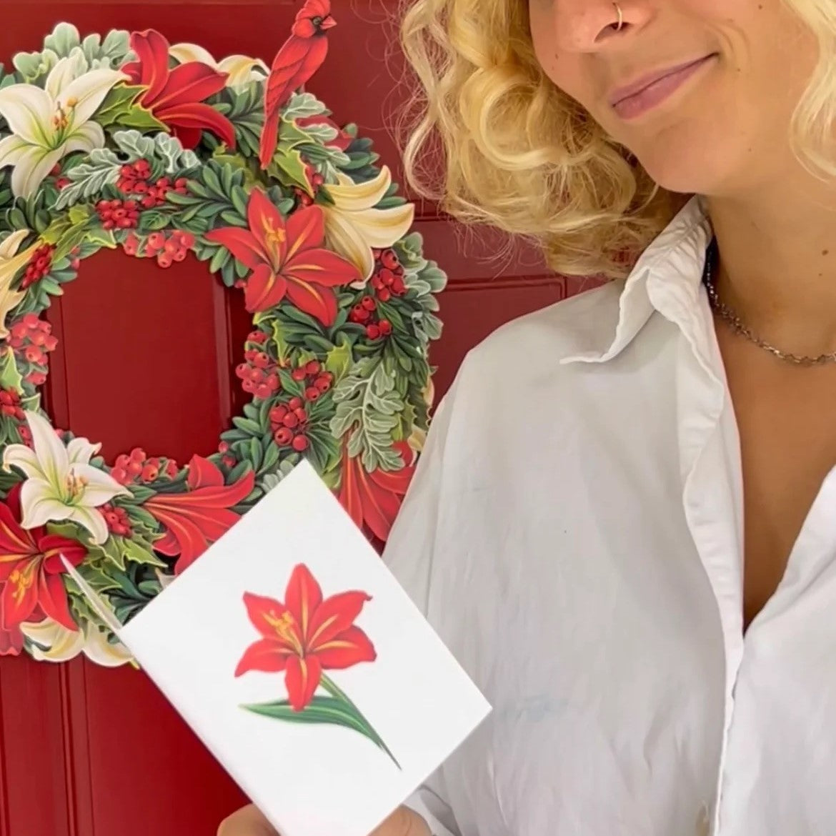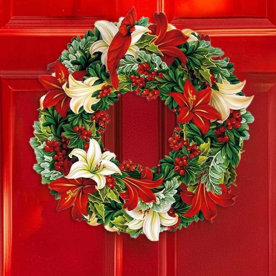 Light up your space with this festive centerpiece or door hanging! This wreath features seasonal visions of red amaryllis, white lilies, boxwood, and holly. Its fold-able design ensures safe storage, so you can enjoy your wreath each season! A welcome splash of beauty that embodies long-lasting warm tidings that will never fade!