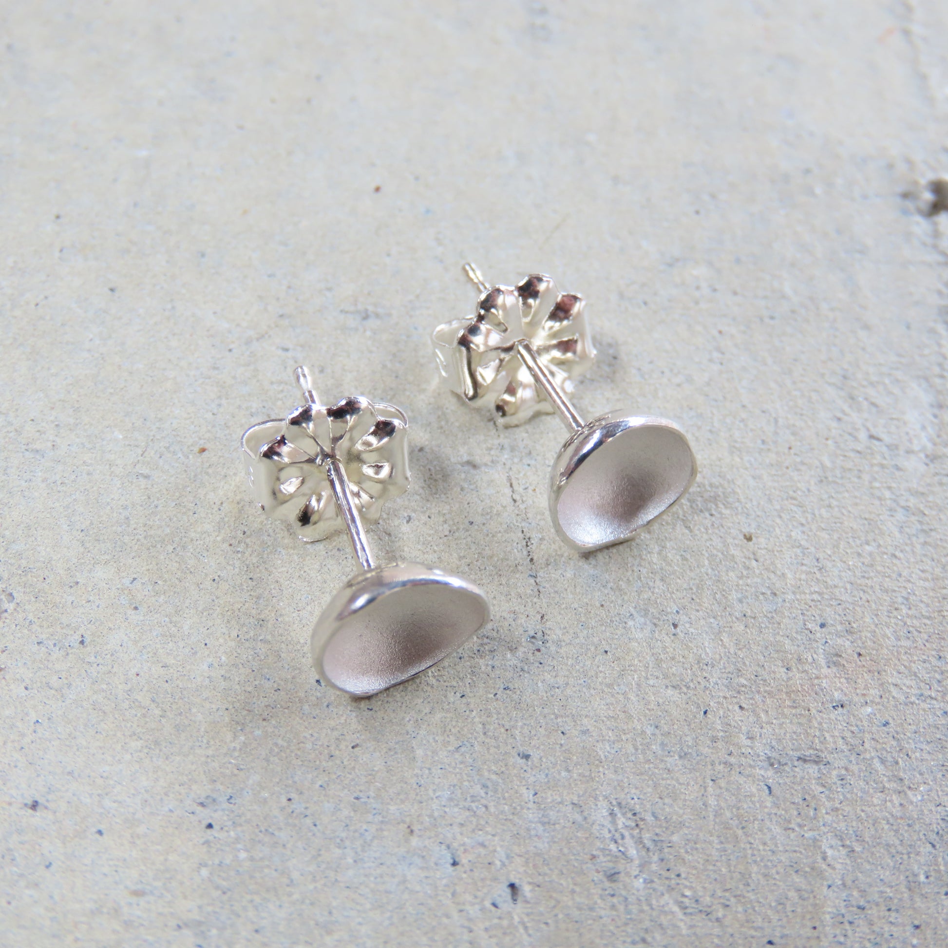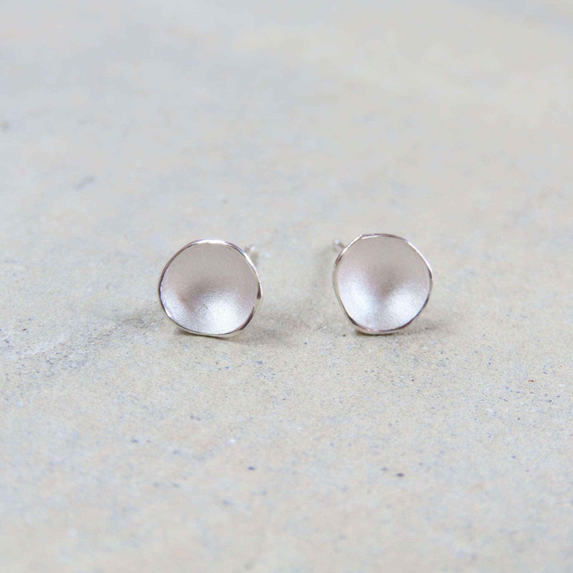 These dainty and delightful little organic shaped stud earrings are made from sterling silver. Measuring approximately 3/8" x 3/8" x 1/8"
