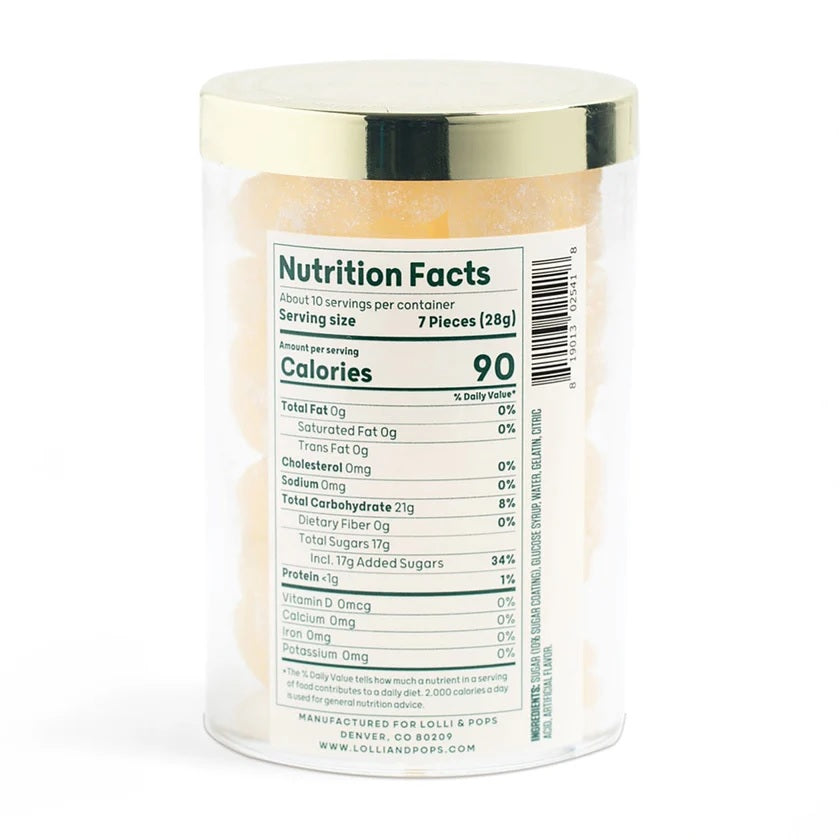 These perfectly light and sweet sparkling champagne gummy bears bring the life to any party. NET WEIGHT: 10 oz