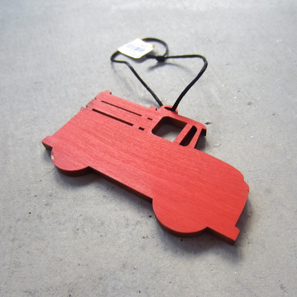 Add a little country to your life! This Vintage Pick-Up Colored Ornament is crafted from locally sourced, sustainably harvested maple hardwood, and measures approximately 4" wide by 2.4" high by 0.2" thick. The wooden ornament has a red finish and is tied with a black cord. Made in Middlebury, VT.