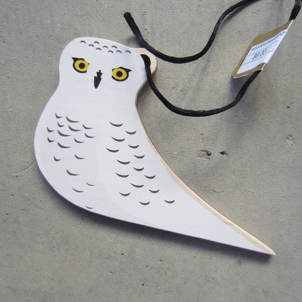 Wooden Holiday Ornament: Snowy Owl